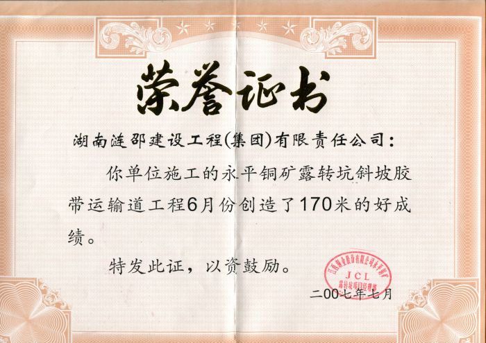 • 江西銅業股份有限公司永平銅礦露轉坑斜坡膠帶運輸道工程